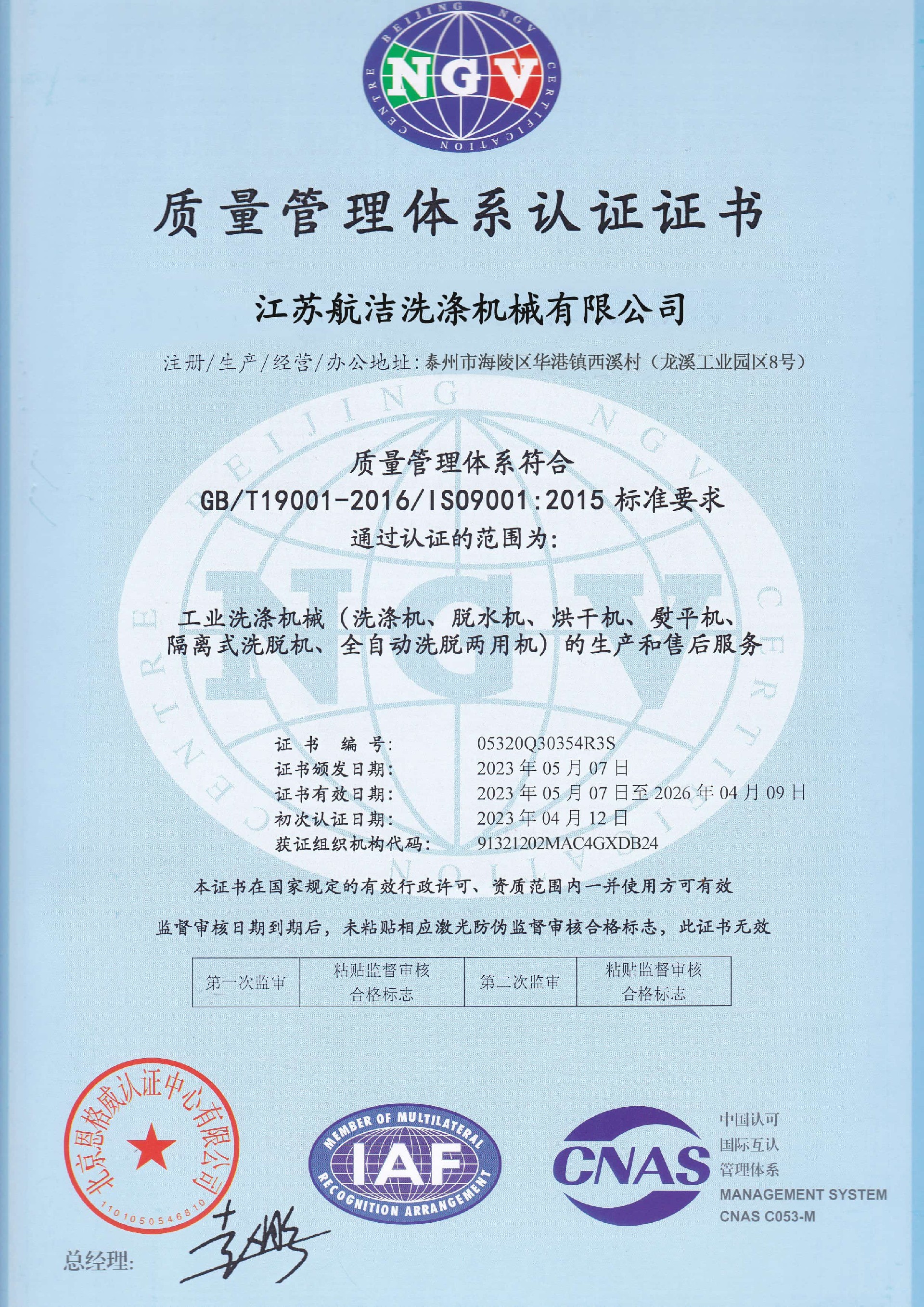江蘇航潔洗滌機(jī)械有限公司是一家專業(yè)研發(fā)、生產(chǎn)、銷售工業(yè)洗滌設(shè)備的企業(yè)。通過不懈努力和進(jìn)取,在國內(nèi)水洗機(jī)、燙平機(jī)、洗脫兩用機(jī)生產(chǎn)制造領(lǐng)域已經(jīng)成為了中堅(jiān)力量,企業(yè)目前具有一座現(xiàn)代化標(biāo)準(zhǔn)生產(chǎn)工業(yè)園的發(fā)展規(guī)模,生產(chǎn)的超低震動(dòng)全自動(dòng)洗脫兩用機(jī)、節(jié)能型工業(yè)燙平機(jī)和工業(yè)烘干機(jī)、臥式洗衣機(jī)及服裝砂洗機(jī)、服裝水洗機(jī)、中小型染色機(jī)的產(chǎn)量和外貿(mào)出口值在同行業(yè)中穩(wěn)居前列。