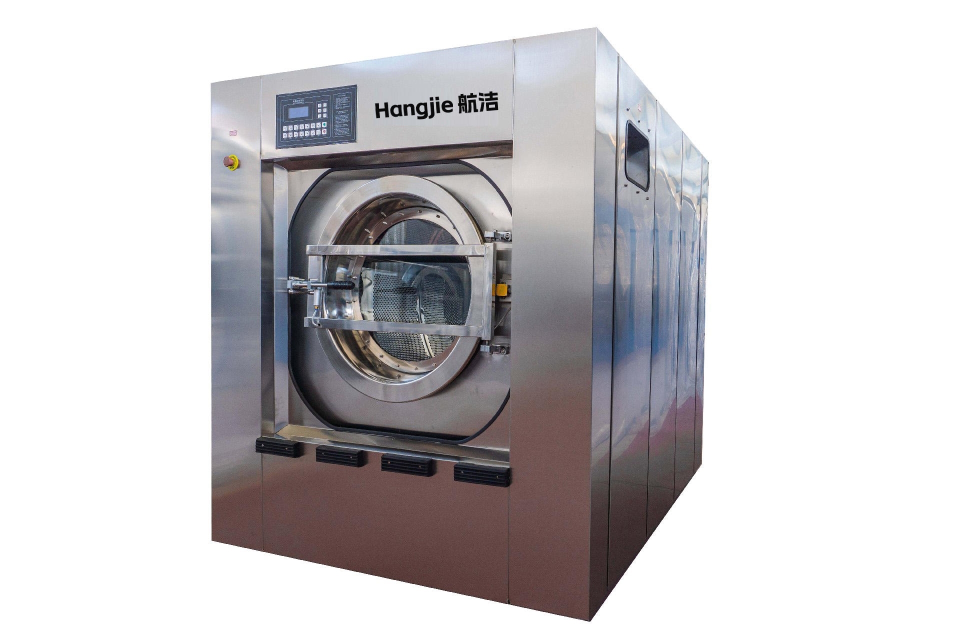 8、變頻調速全懸浮式全自動洗滌脫水機,國內名優品牌,用于各種織物的水洗和脫干專用軸承及油封;大門口設計,便于裝卸物料;氣動控制閥;超震保護設計;應有緊急制動開關。