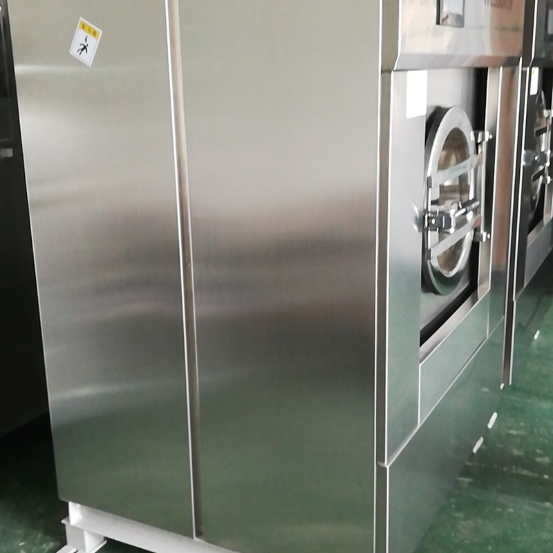 8、變頻調速全懸浮式全自動洗滌脫水機,國內名優品牌,用于各種織物的水洗和脫干專用軸承及油封;大門口設計,便于裝卸物料;氣動控制閥;超震保護設計;應有緊急制動開關。